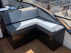 Indulge in Luxury interiors equipped with modern amenities, including a spacious kitchen with induction cooktop, fridges, icemaker, drinks fridge,  coffee machine, bathroom/showers and 12volt solar panels systems with 240volt power and shore power standard.