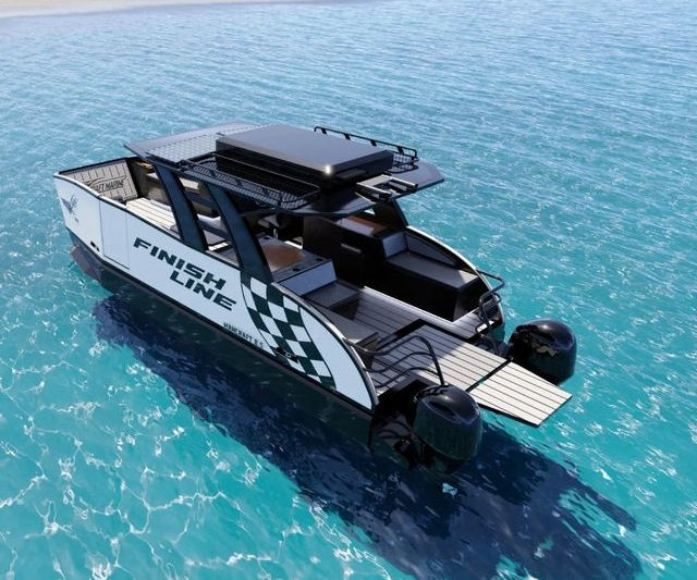 Finish Line boats build high quality Aluminum Sports Catamarans with correct hydro dynamics built into each hull for maximum performance from your motors and in our new ranges of 2025 designs a new reverse Bow feature and front bow and stronger stern brand new design 2025 configurations... now increase performance/stability further than ever built before bringing up to 20% more power and increase water drive ability that enhances the fitted motors to be longer lasting than any pontoon boat built. We Build correctly our hydrodynamic needs to ensure you get the best boat performance on the market.