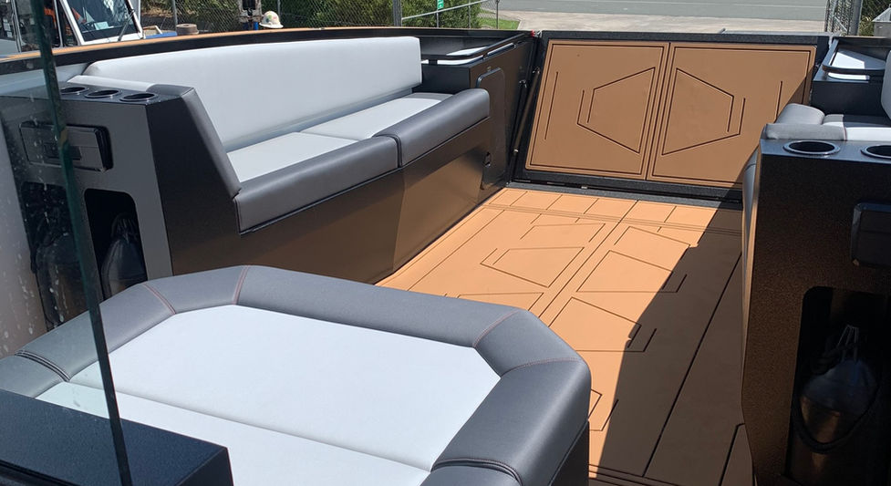 Helm and passenger seating are custom designed with detailed options for comfort and functionality. All seating features modern stitching and ample under-cushion storage. Optional upgrades include personalized embroidery and matching trims with personalized inbuilt name of the boat engraving into the trim on every seat area with comfortable modern contemporary designs and many under cushion storage areas........