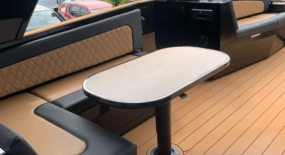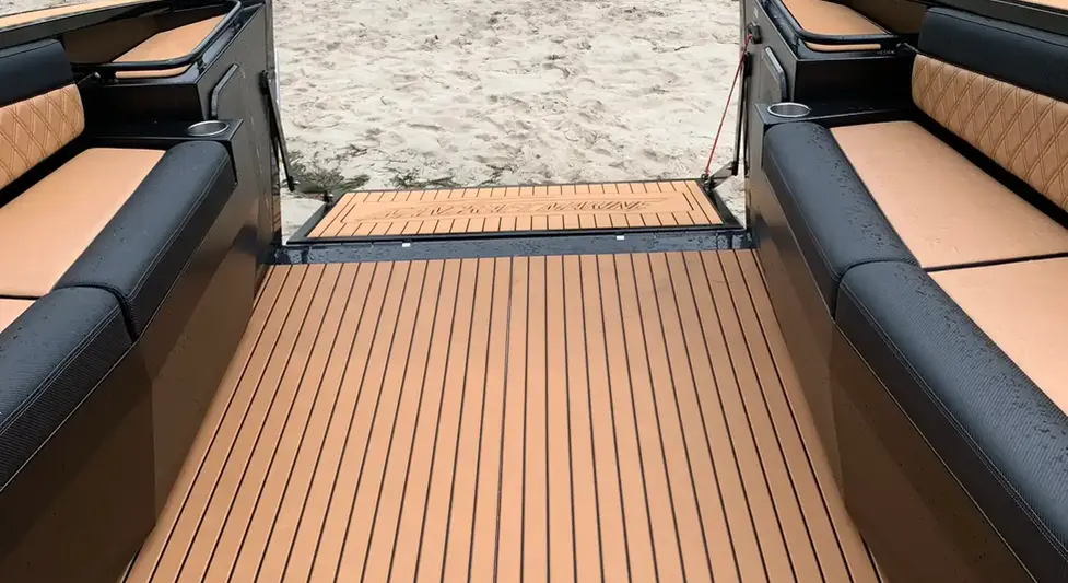 Outfitted with premium SeaDek marine flooring throughout, this boat ensures comfort and effortless cleaning after a day out on the water. Custom color options and logo engraving are available. (Optional synthetic teak upgrade available upon request.) https://www.seadek.com/